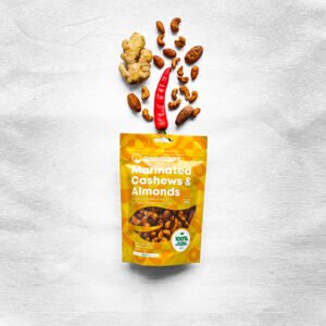 We don’t just “dust” our nuts with spice; we marinate them. By soaking premium, toasted cashews and almonds in our proprietary Suya spice blend, we ensure that every single nut is coated in rich, smoky, and savory goodness. Finished with a touch of sesame, this is a sophisticated snack that satisfies your cravings and nourishes your body with healthy fats and clean protein.